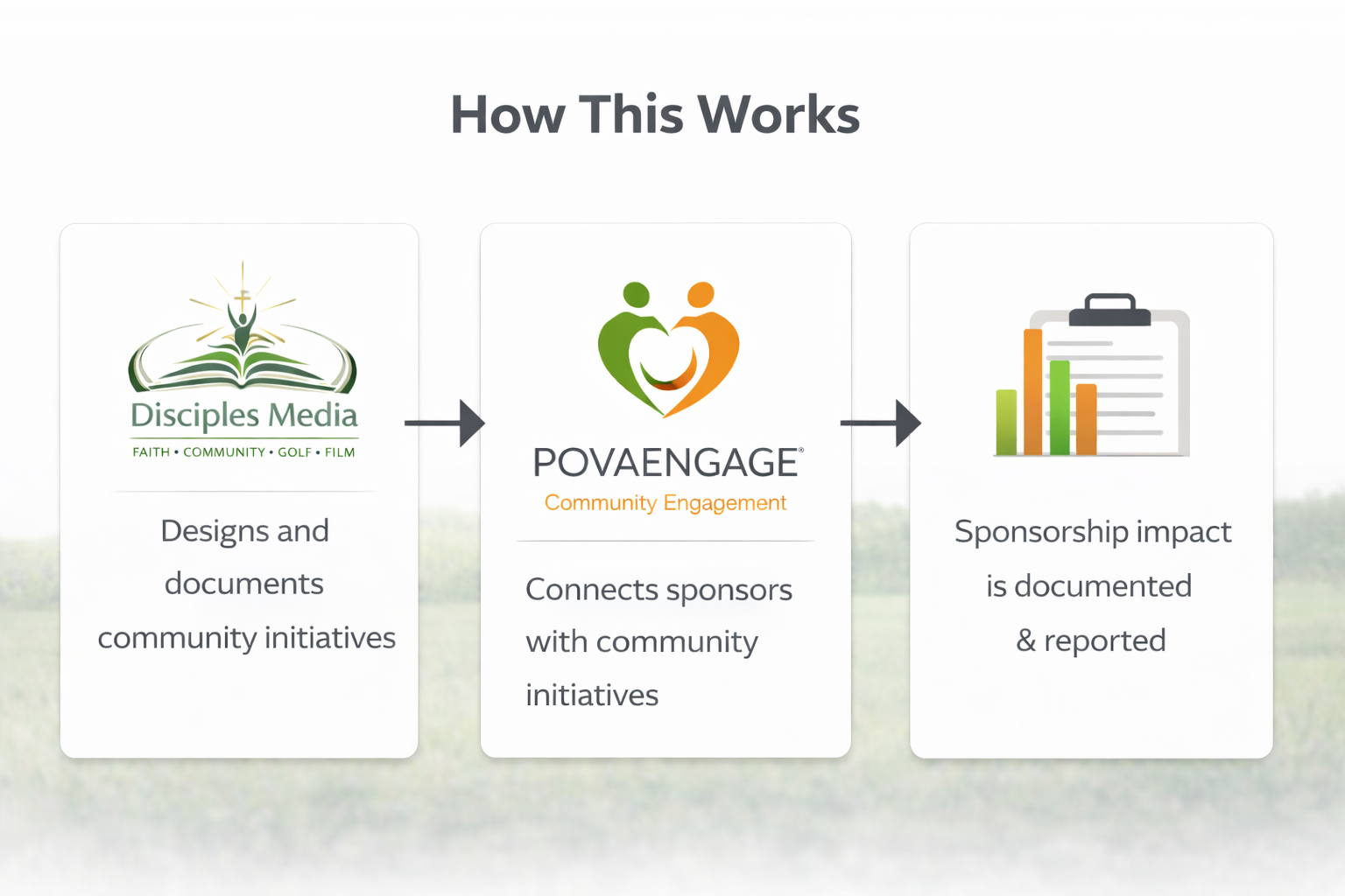 POVAENGAGE is the community engagement platform operated by Disciples Media — connecting sponsors with faith-aligned initiatives through events, partnerships, and documented impact.